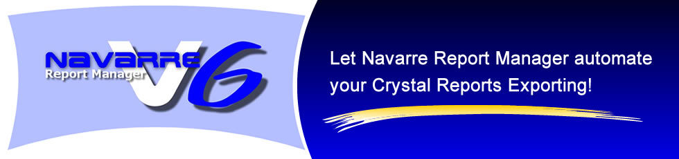 Navarre Report Manager is an affordable and easy to use product that will change the way in which you think about Crystal Reports. This easy and yet powerful software gives you the ability to schedule your Crystal Report to run at any time of day and export it to any number of destinations automatically with no user interaction needed.